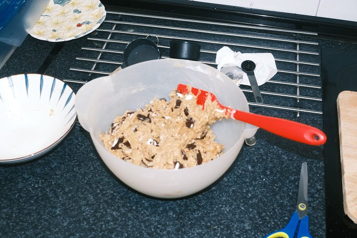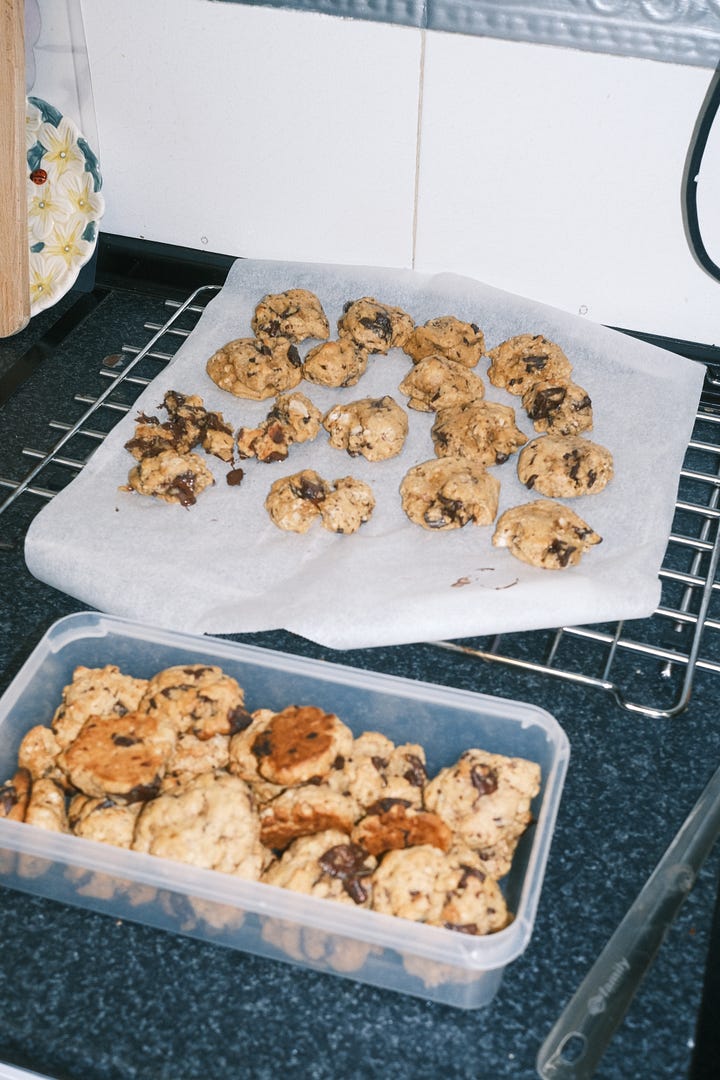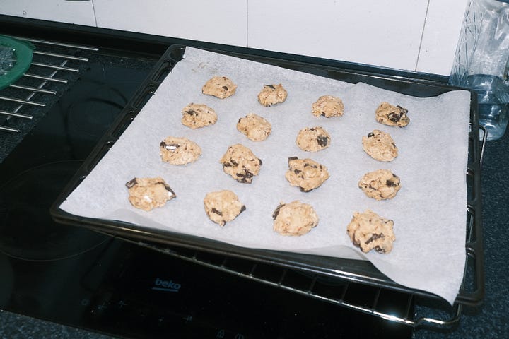 como es tradición en mi vida, en cada cumpleaños saco mi recetario y me pongo la tarea de preparar algo dulce para poder compartir ese día con mis amigues. este año me ha apetecido hacer una receta que llevo repitiendo desde que estaba en la uni, y que busqué porque una de mis amigas cercanas por aquel entonces había decidido empezar a seguir una dieta vegana. hoy en día la sigo haciendo porque es una receta súper fácil y además quedan unas galletas bien buenas.